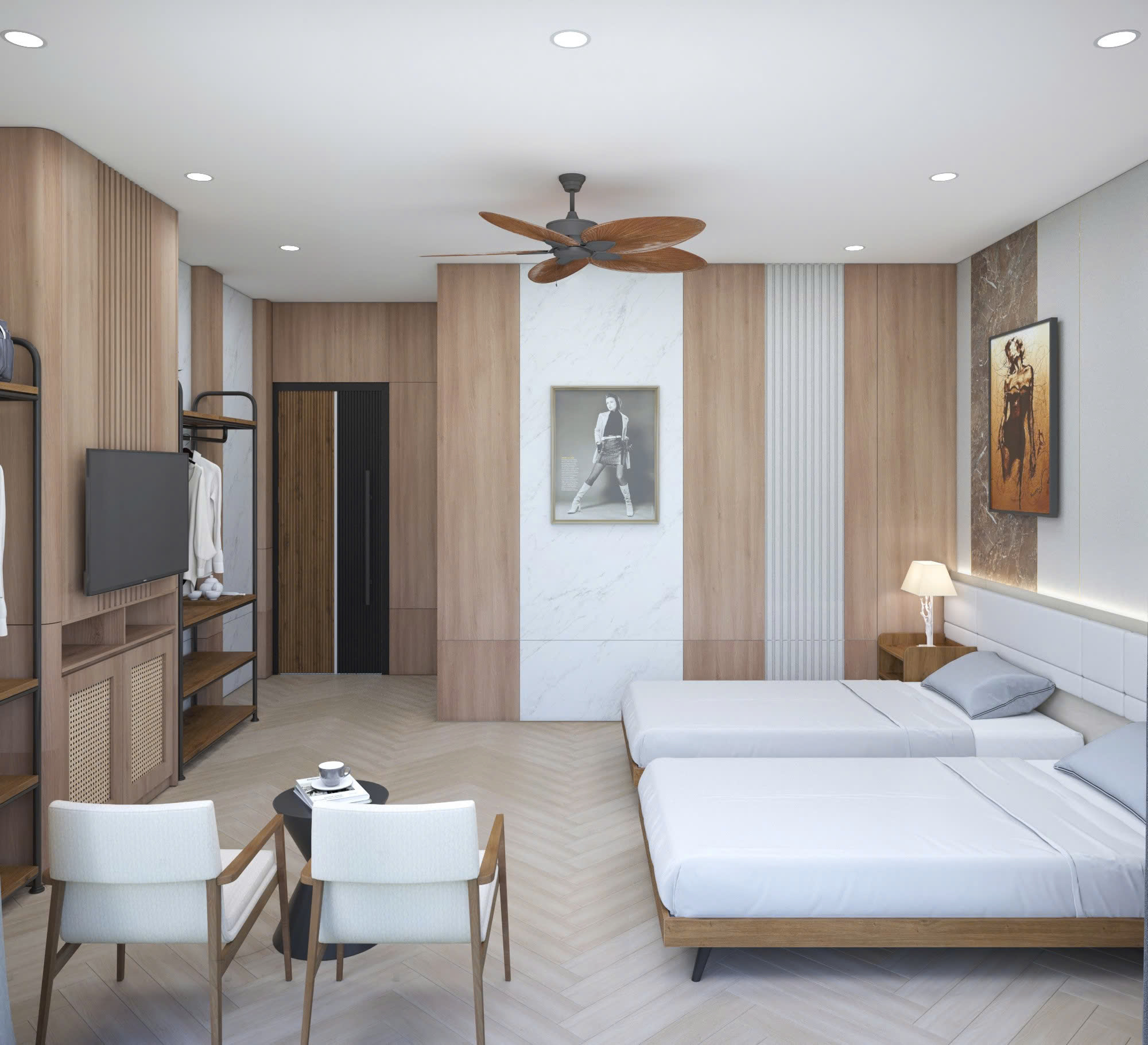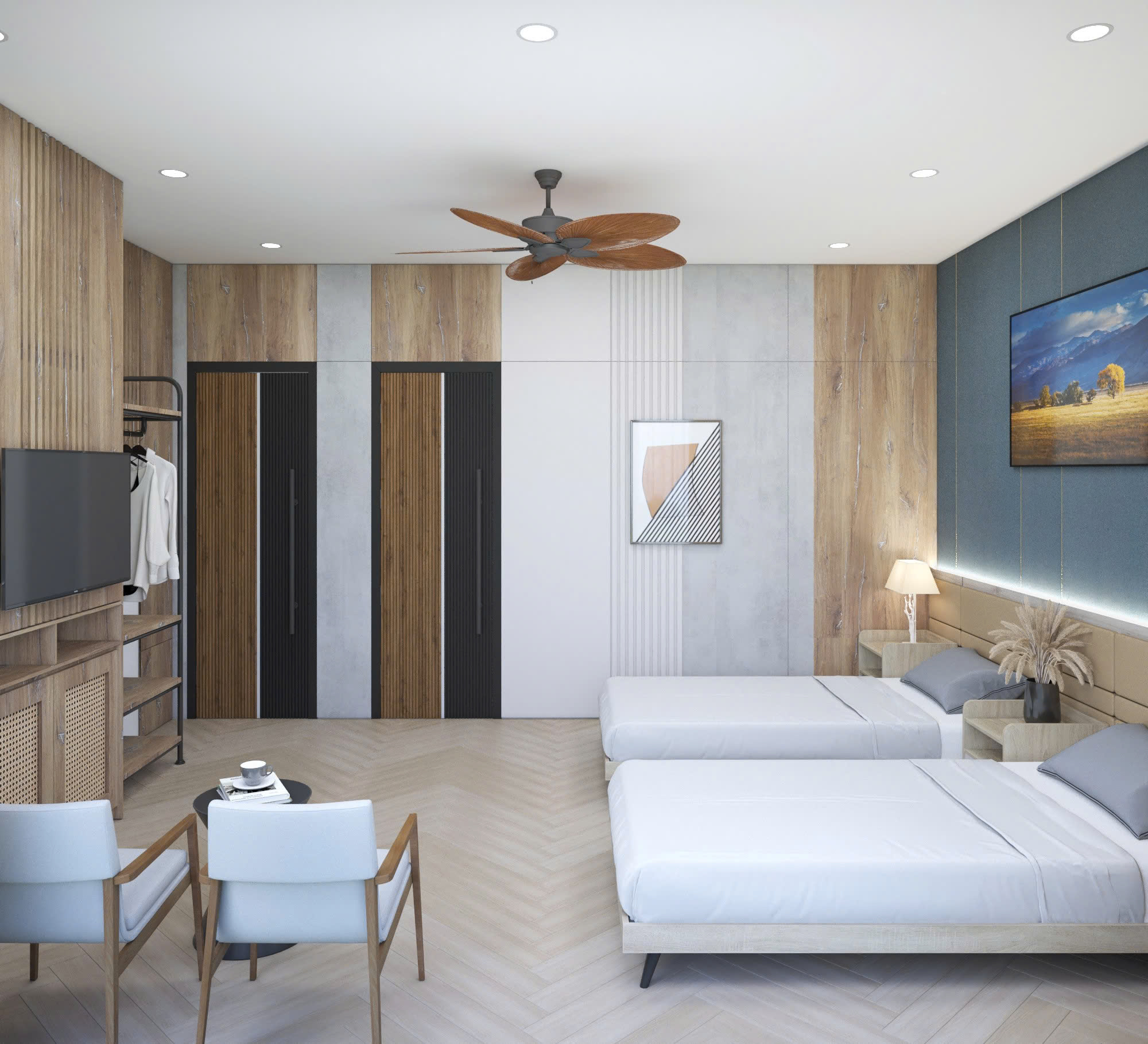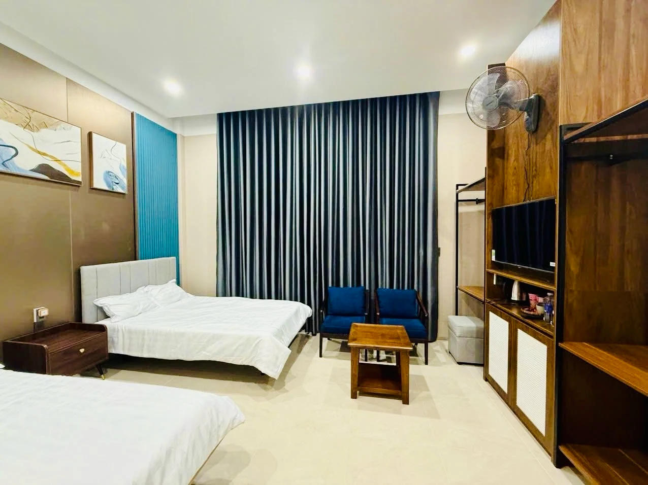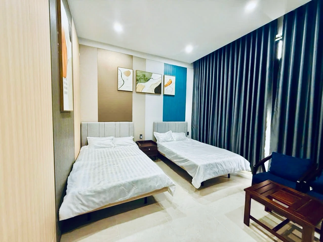 Phòng rộng rãi, tiện nghi, phù hợp cho gia đình hoặc nhóm bạn. Không gian hiện đại, dịch vụ chuyên nghiệp, đảm bảo trải nghiệm tuyệt vời cho kỳ nghỉ của bạn.