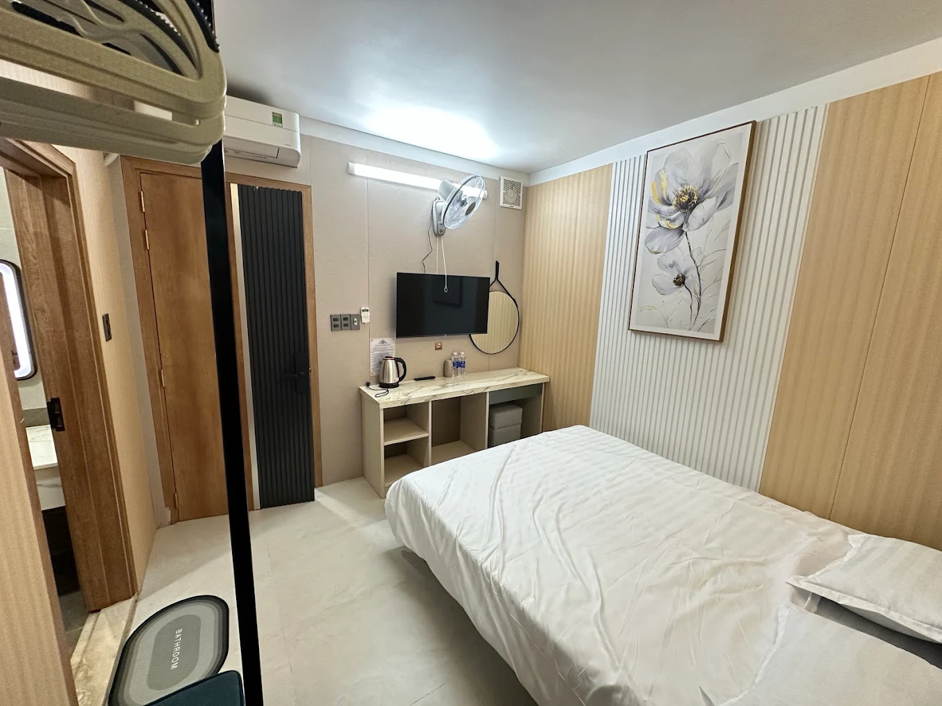 Phòng tắm riêng, điều hòa, wifi miễn phí.